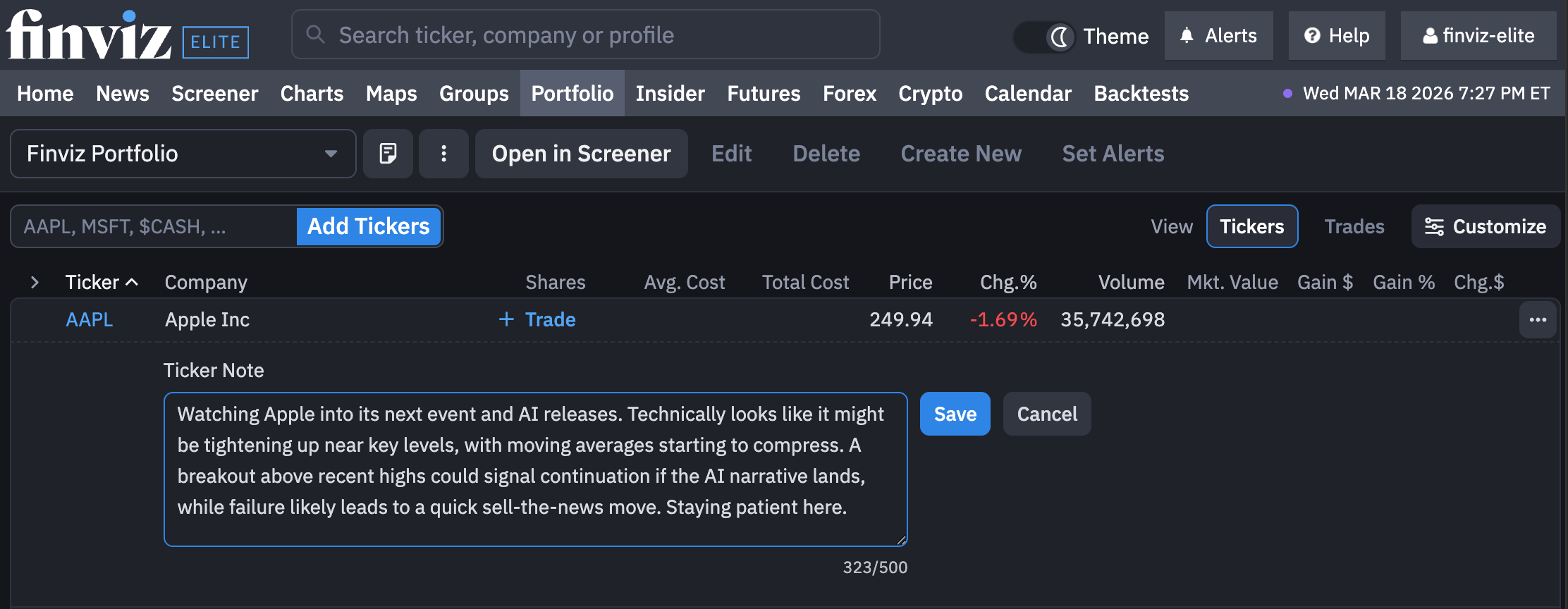 Portfolio Notes gives you the power to write your thesis, ideas, and trade logic alongside your capital. No spreadsheets. No separate journal. No switching tabs. It's all included now in your Finviz plan.