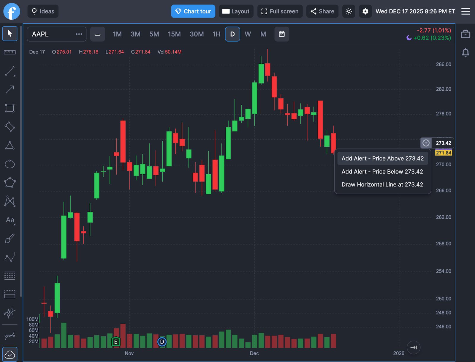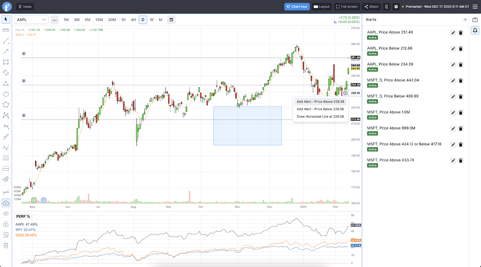- You gain sharper, more precise context around the price levels that actually matter by placing alerts exactly where you want them—right on the chart, not buried in menus.