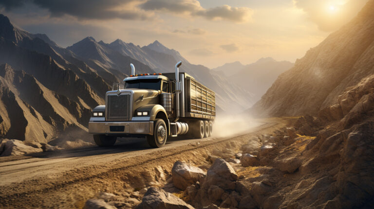 A truckload carrier negotiating a challenging terrain, reflecting the company's expertise in short-to-medium haul truckload.