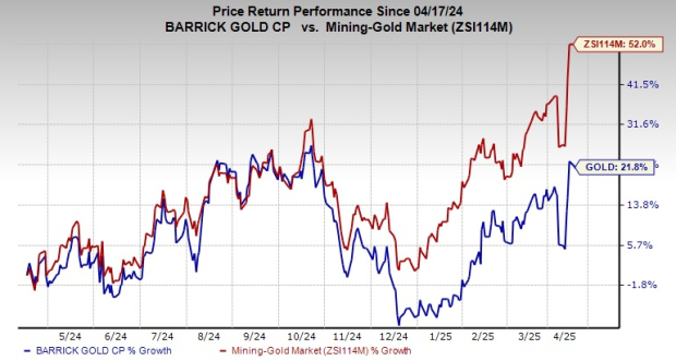 Barrick’s shares have gained 21.8% in the past year against a 52% rise of the industry.