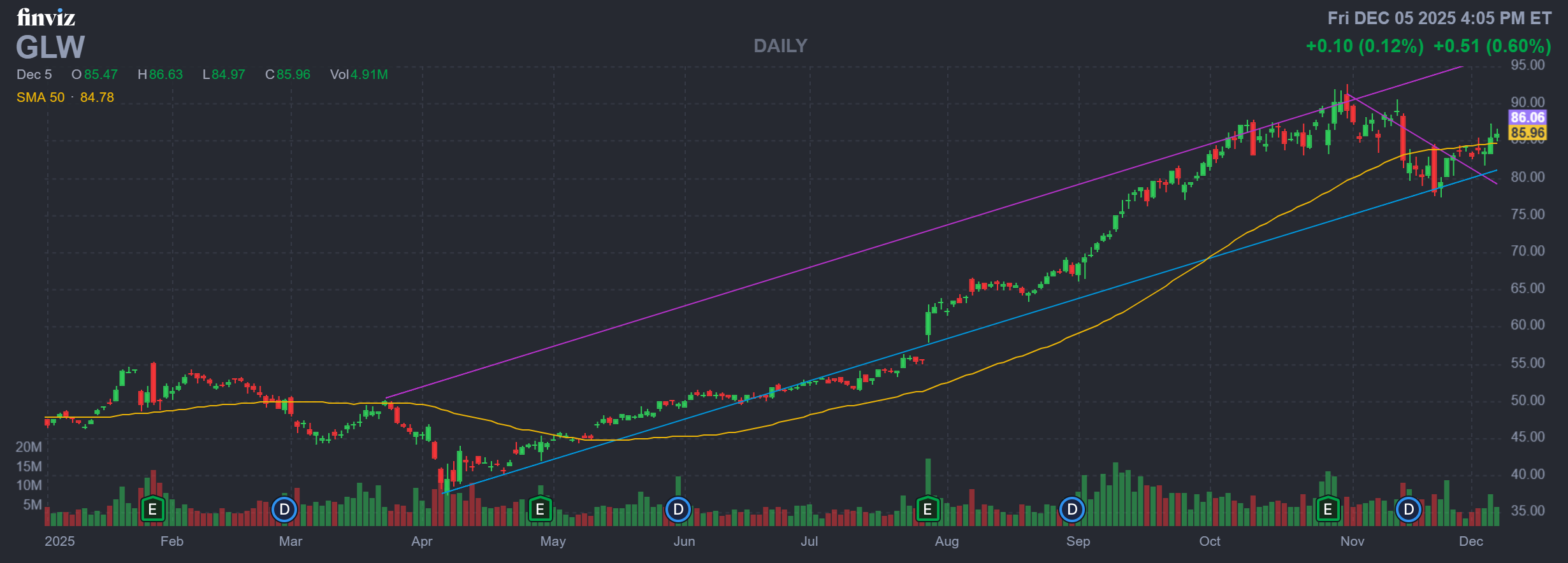 Subscribers to Schaeffer's Weekend Trader options recommendation service received this GLW commentary on Sunday night, along with a detailed options trade recommendation -- including complete entry and exit parameters. Learn more about why Weekend Trader is one of our most popular options trading services.