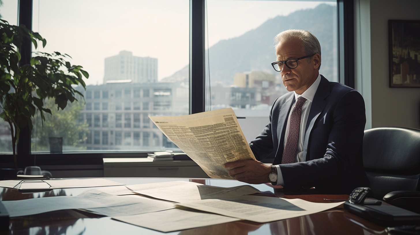 An Invesco Advisers executive reviewing investment grade California municipal securities in a modern office.