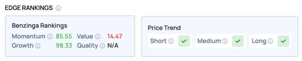 Benzinga Edge Rankings:Benzinga Edge ranks Affirm with exceptionally high growth and momentum scores — 98.33 and 85.55 respectively — highlighting its strong performance outlook despite low value ratings.