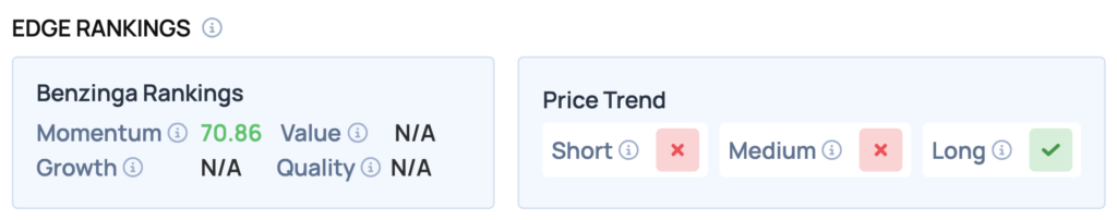 Momentum: Bullish (Score: 70.86/100) — Stock is outperforming the broader market.