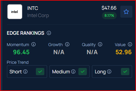 Benzinga's Edge Rankings place Intel in the 96th percentile for momentum and 53rd percentile for value, reflecting its mixed performance. Check the detailed report here.