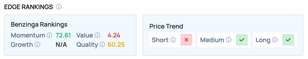 According to Benzinga Edge Rankings, Tesla scores well on Momentum and offers a favorable price trend in the Short, Medium, and Long term.