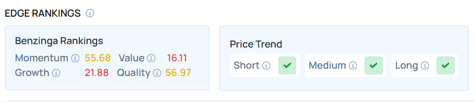 LLY maintains a stronger price trend over the short, medium, and long terms, with an average Momentum ranking, according to Benzinga’s Edge Stock Rankings.