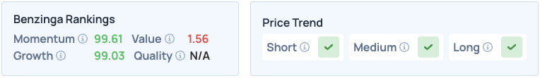 Bloom Energy’s shares were up 7.42% on Friday, closing at $149.50, and are down 3.82% overnight. The stock scores high on Momentum and Growth in Benzinga’s Edge Stock Rankings, with a favorable price trend in the short, medium and long terms.