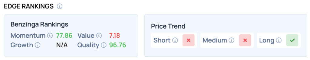 Below is the Benzinga Edge scorecard for Broadcom, highlighting its strengths and weaknesses compared to the broader market: