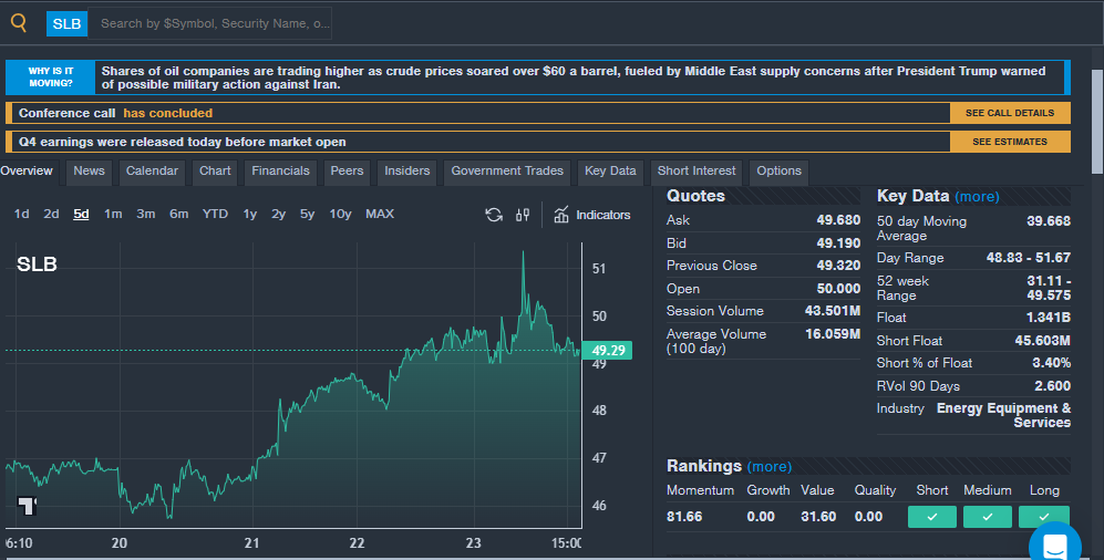 SLB Limited(NYSE:SLB): The oil company saw strong interest from readers during the week. On Friday, the company reported fourth-quarter financial results with revenue and earnings per share both beating analyst estimates. The report was one of the first from a major oil company after the military action in Venezuela which has the sector on increased watch. The company's Production Systems segment was helped by the recent acquisition of ChampionX, which could highlight future growth opportunities. Also a potential growth segment, the company highlighted the "rapid expansion of our Data Center Solutions business" and said it has increased deployment of AI solutions. Stifel raised the price target on the stock from $48 to $52, while maintaining a Buy rating.