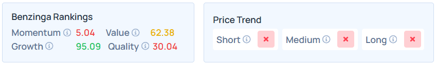 This disconnect is further confirmed by the price trend indicator, which flashes bearish signals across the short, medium, and long terms, as per Benzinga Edge’s Stock Rankings.