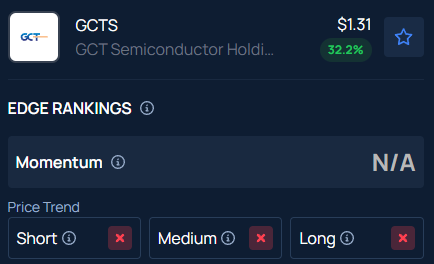 Benzinga’s Edge Stock Rankings indicate that GCTS has a negative price trend across all time frames.