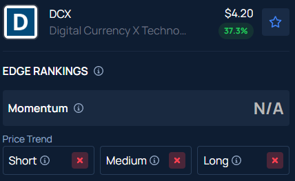 Digital Currency X Technology Inc.(NASDAQ:DCX) shares fell 8.76% to $3.75 in after-hours trading on Thursday, after jumping 34.31% in the regular session on news that the company regained Nasdaq listing compliance.