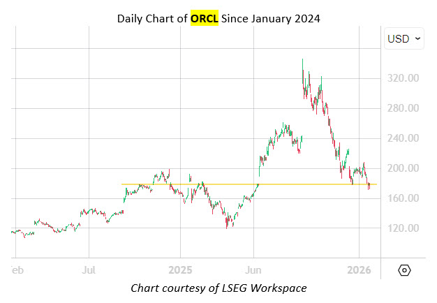 Subscribers to Schaeffer's Weekend Trader options recommendation service received this ORCL commentary on Sunday night, along with a detailed options trade recommendation -- including complete entry and exit parameters. Learn more about why Weekend Trader is one of our most popular options trading services.