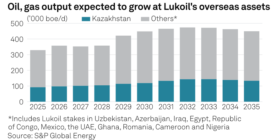 Analysts say Lukoil's oil and gas output from its overseas operations is still expected to rise through the end of the decade, according to S&P Global, despite the asset sale.
