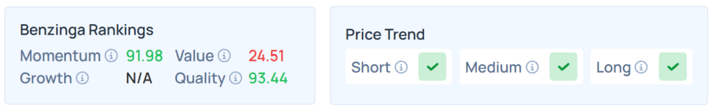 Benzinga's Edge Stock Rankings indicate that GOOG has a Quality score of 93.44.