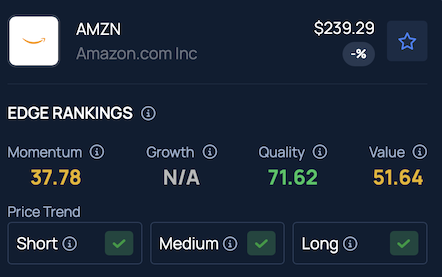 Amazon shares earn a strong Quality rating in Benzinga's Edge Stock Rankings, supported by a positive price trend across the short, medium and long-term timeframes.
