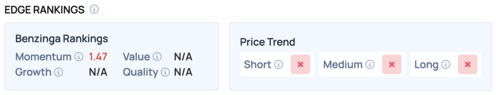 Momentum: Bearish (Score: 1.47) — The stock is showing very weak performance indicators.
