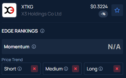 Benzinga's Edge Stock Rankings indicate that XTKG has a negative price trend across all time frames.