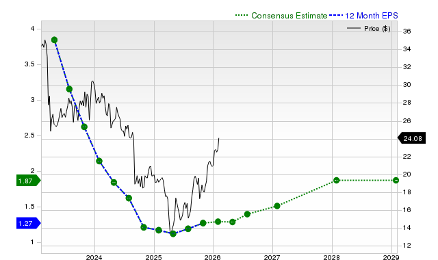 The chart below shows the evolution of forward 12-month Zacks Consensus EPS estimate: