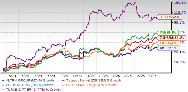 The stock price performance tells a similar story. Over the past 12 months, Altria stock has returned 37.1%, significantly underperforming the industry average of 54.3%. In the same time frame, Philip Morris has delivered an impressive 65.8% return, while Turning Point Brands surged a remarkable 106.1%. Even shares of British American Tobacco p.l.c. BTI have surged 45.2% in this time frame. This consistent underperformance implies more than just cyclical weakness — it points to core issues holding the stock back compared to more agile peers like Philip Morris and Turning Point Brands.